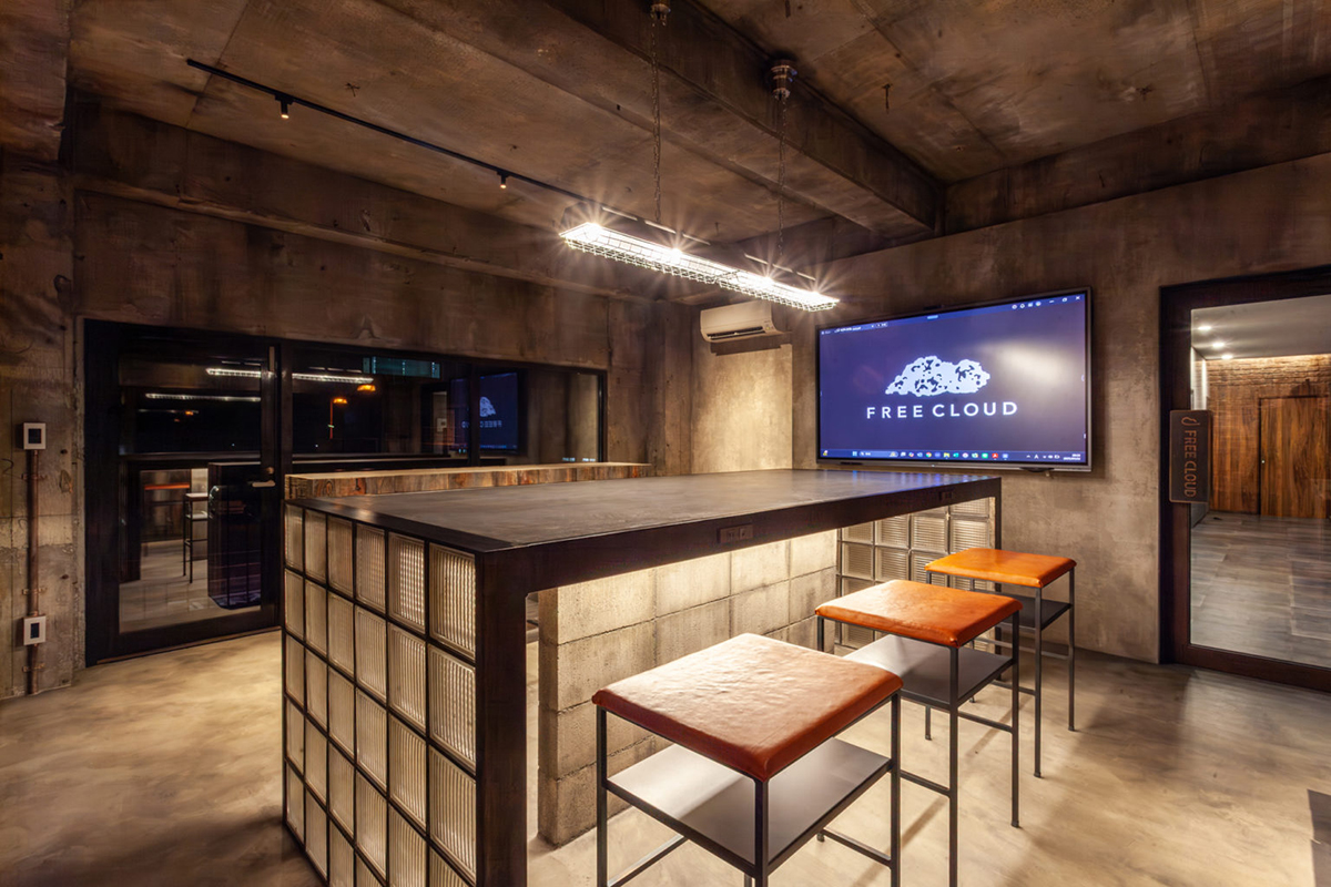 壁にはFREE CLOUDのロゴが映し出された大きなスクリーンが。ここからまた新しい物語が始まる、そんな予感を抱かせてくれます。