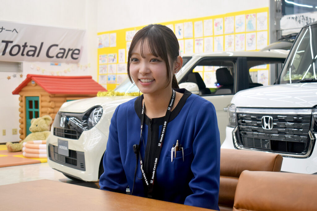 「実は、中古車店に入る前からホンダで働きたいと思っていたんです。ホンダ車が好きで、ディーラーで働くことにも憧れがあって。でも当時はタイミングが合わず、まずは中古車のお店に就職しました」