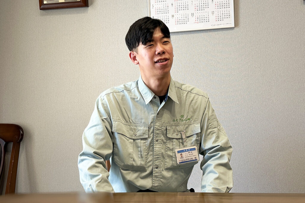 「最初は公務員を目指していたんですが、先生から山久プロパンを紹介されて、見学に行ったんです。社内の雰囲気が良くて、ここで働きたいなと感じました。それに、ガスって生活に欠かせないものだから、やりがいがありそうだなと思ったんです」